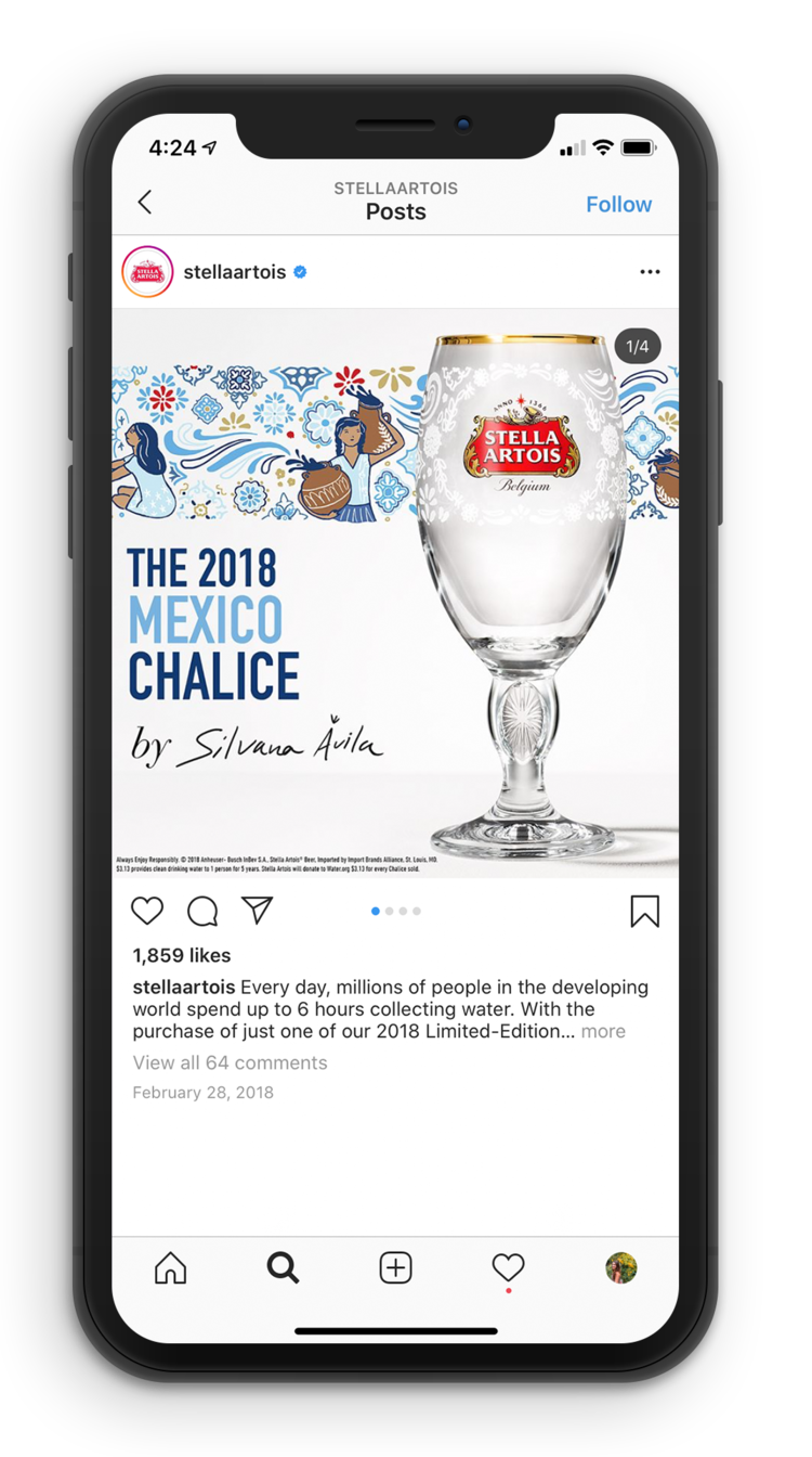Social content played a huge role in educating consumers about the global water crisis. People could learn about the countries that are most impacted, as well as what they can do to help. Each social post linked out to amazon.com so people willing to support could purchase a Stella Artois Chalice. Every purchase of a Limited-Edition Chalice or Stella Artois in the US would help provide clean water for someone in the developing world for 5 years.